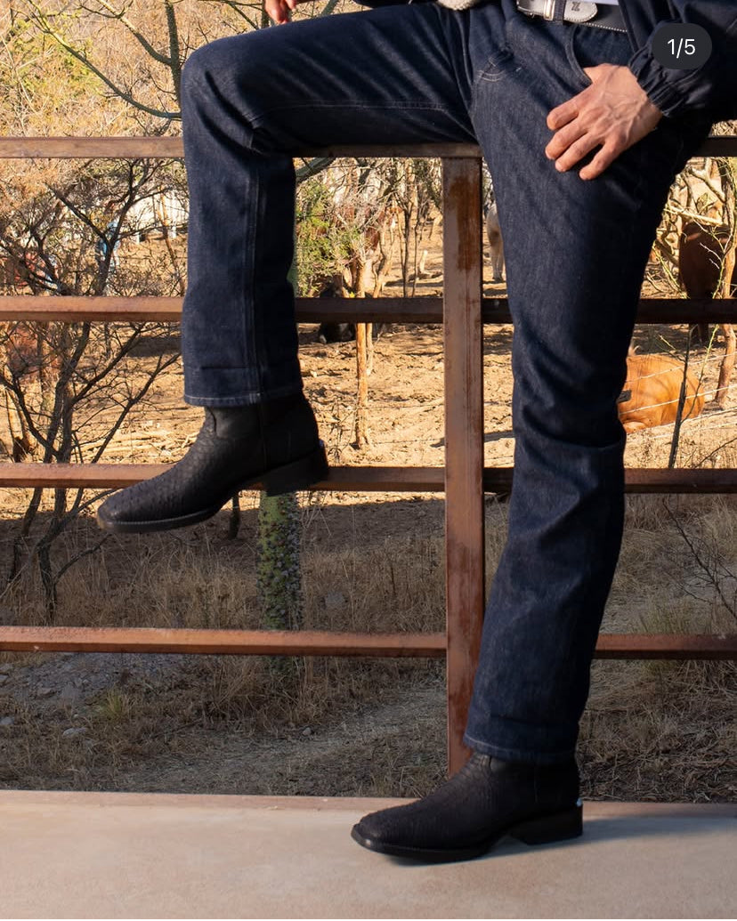 Men's Leather Slip-Resistant Roper Boot Black Bull Fight Color Style 1000